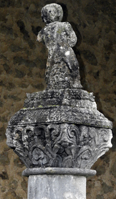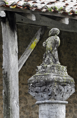 Les sculptures d’Octave Faubert : maçon et maire de Pressignac de 1919 à 1945. Sur les piliers d’une grille et sur une maison du bourg.